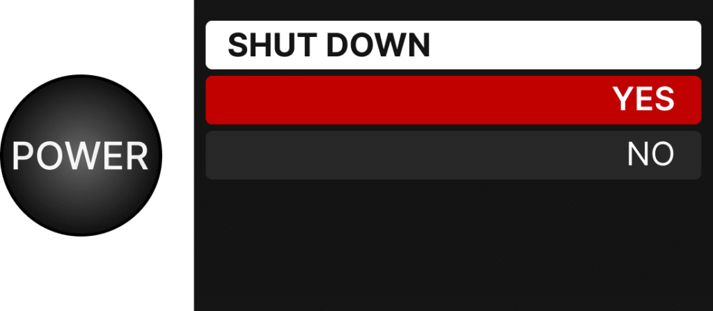 At the end of the cook, press and hold the POWER button, then with YES selected press the control knob to confirm.